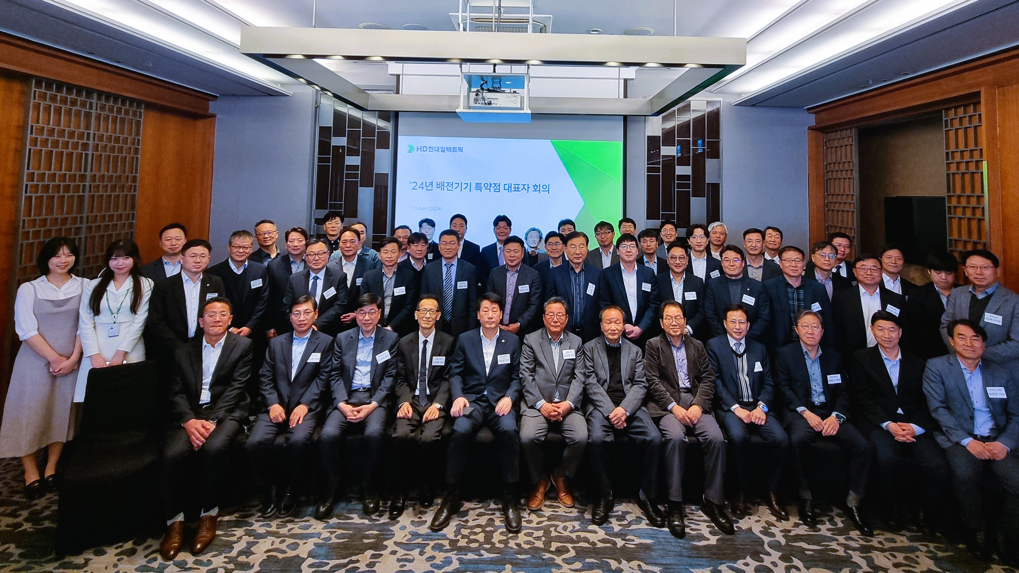 지난 11일, 배전국내영업담당은 분당 코트야드 바이 메리어트 호텔에서 ‘2024년 배전기기 특약점 간담회’를 실시하였습니다. 간담회에는 대운산전을 비롯해 현대파워, 세왕이엔티 등 46개의 차단기, 변압기 특약점 대표들이 참여했습니다.