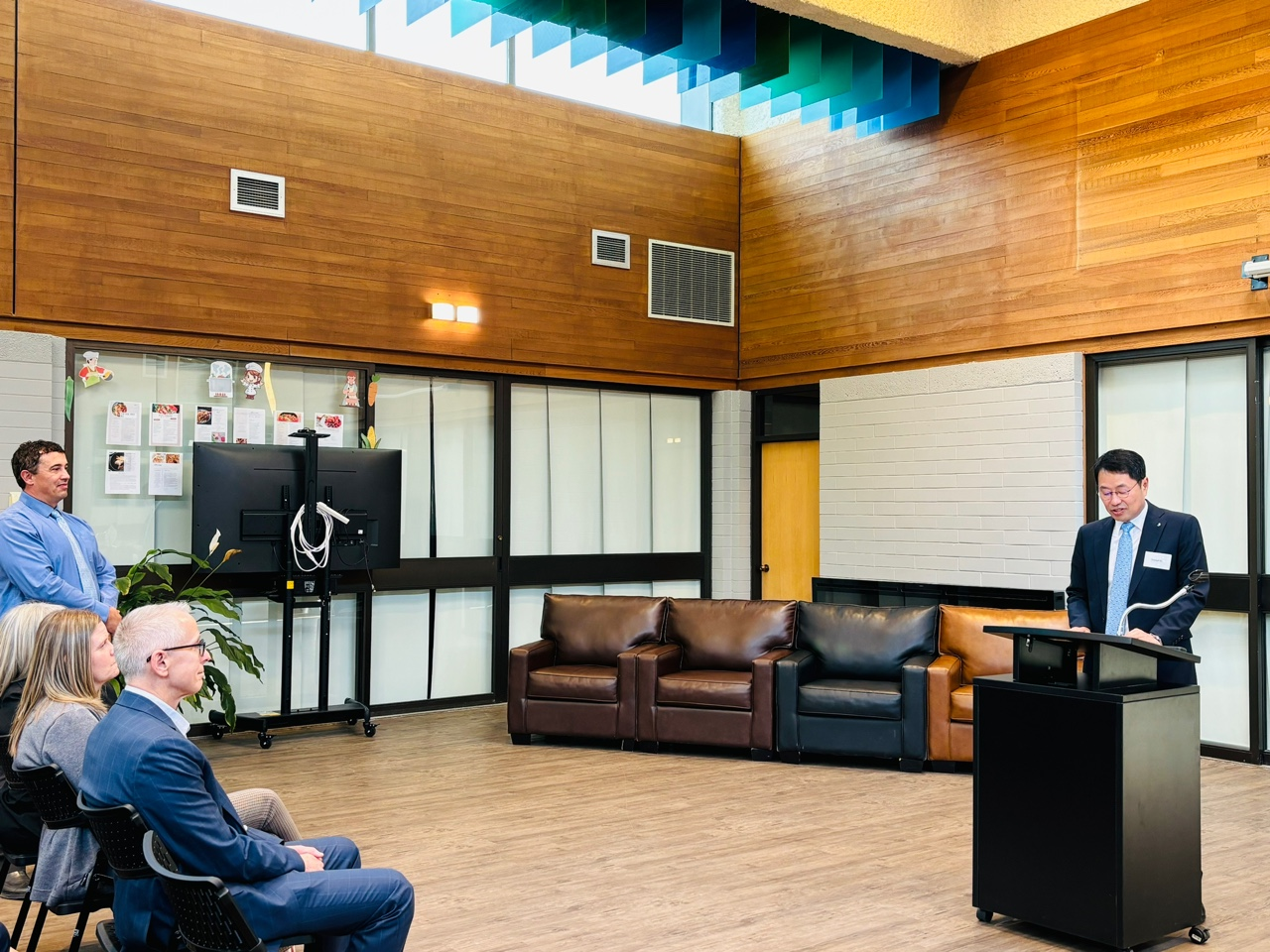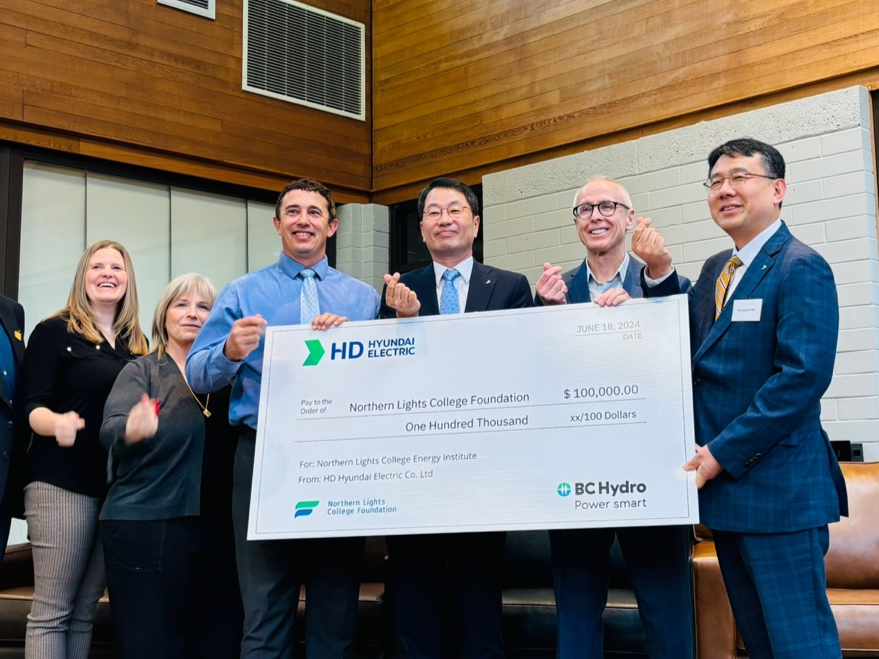 우리 회사는 지난 18일, 캐나다 브리티시컬럼비아 주에 위치한 Northern Lights College Foundation에 10만 캐나다 달러(약 1억원)를 기부했습니다. 이 날 전달식에는 김영기 부사장과 BC Hydro의 대런(Darren) 부사장, Northern Lights College Foundation 본다로프(Bondaroff) 대표 등이 참석하였습니다.