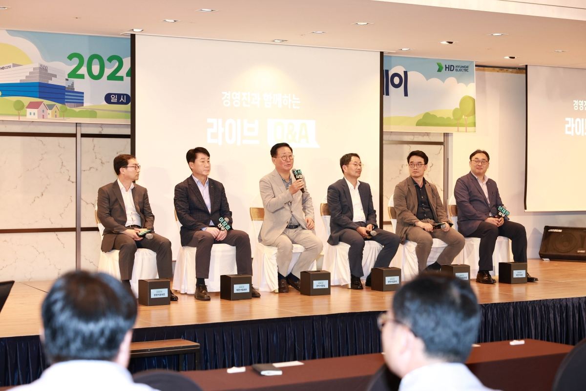 이어 진행된 라이브 Q&A에는 지난 행사와 달리, 조석 사장 외에도 각 본부장 및 부문장이 동석해 사우들과 기탄 없는 소통의 시간을 가졌습니다. 배전사업본부의 친목 도모 행사, 경영지원부문의 도서 선물 문화와 같은 가벼운 주제부터, 전력사업본부, 회전기부문의 R&D 현안, 기획‧신성장부문 주요 추진 사업 등 심도 있는 주제까지 다양한 질문들이 오고 갔습니다.