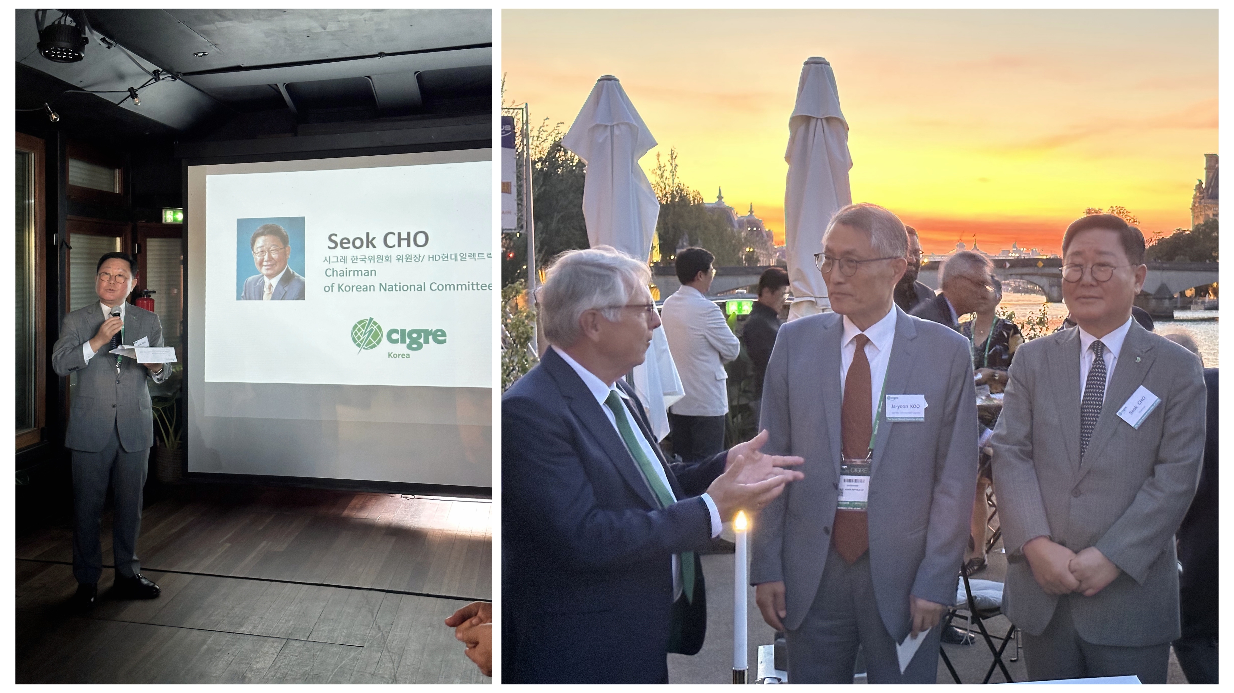 26일 저녁에는 파리 세느 강변 선상에서 ‘한국의 밤’ 행사가 마련되었습니다. 조석 사장이 시그레 한국위원회 위원장의 자격으로 행사를 주관하였으며, 국내 기업을 포함해 시그레 회장 및 해외 유수 전력회사 관계자 등 150 여명이 참석해 서로 활발한 교류 시간을 가졌습니다.