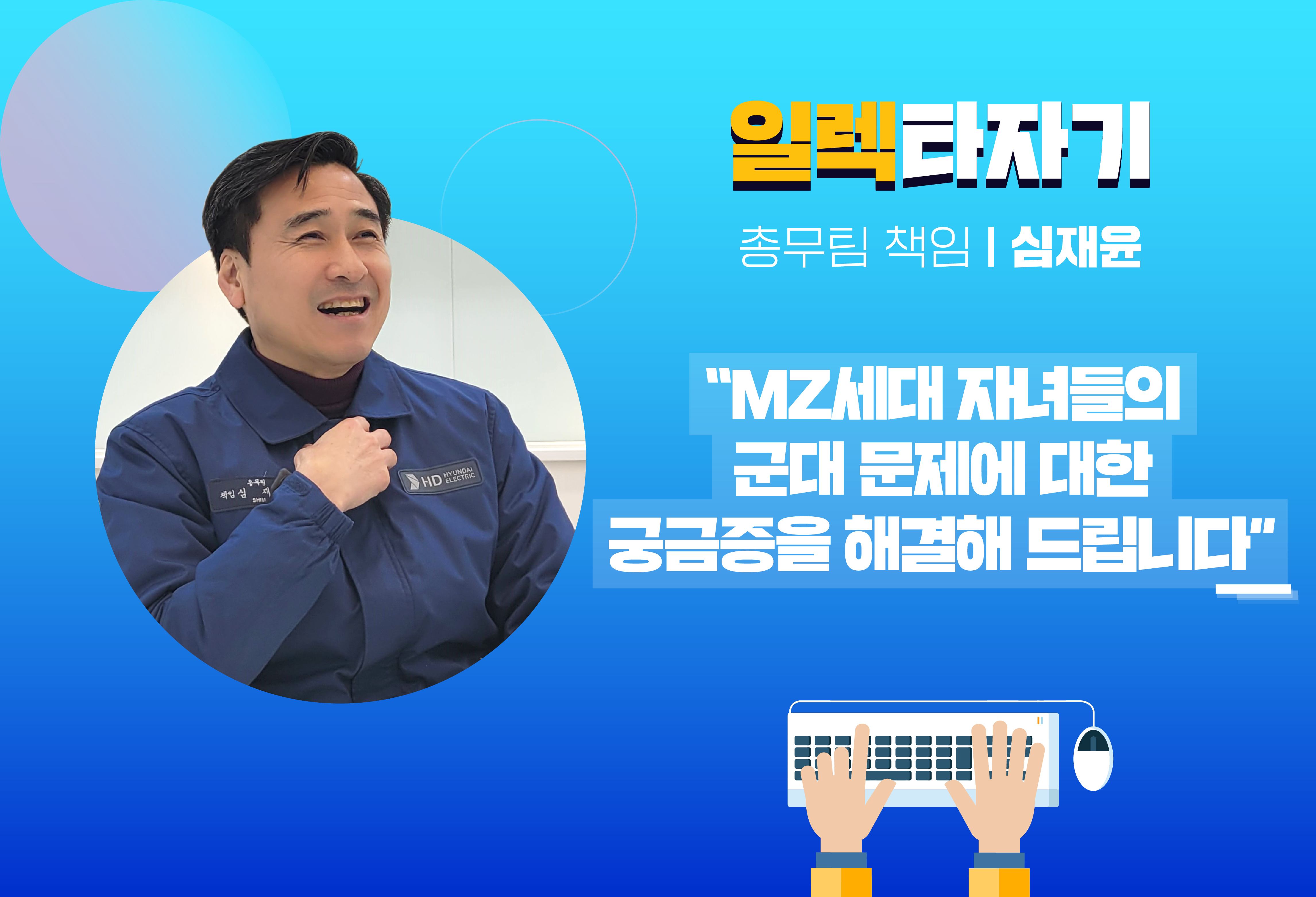 그러다 보니 회사의 목표인 이윤창출을 위한 생산활동과는 동떨어진 면이 있다. 회사의 이익을 위해 나는 무엇을 할 수 있을까를 고민하다 “내가 가장 잘 할 수 있는 데서 찾자”는 생각으로 아이디어를 낸 것이 바로 『병무상담 프로그램』(정식 명칭 : HD현대일렉트릭 병무상담소)이다. 2월 1일 런칭했다.