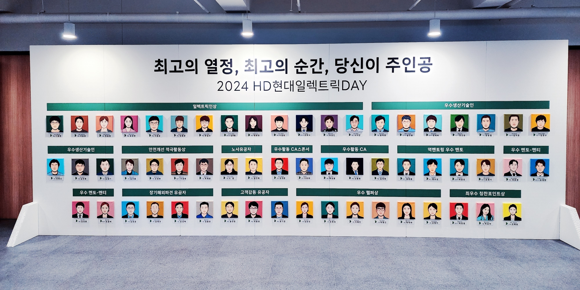 먼저 로비에 들어서면 ‘올해의 HD현대일렉트릭인’이라는 주제로 직원들의 팝아트 초상화가 설치돼 있는데요. 올 한 해 회사를 위해 헌신하며 뛰어난 성과를 일궈낸 직원들의 면면을 만나 보실 수 있습니다.