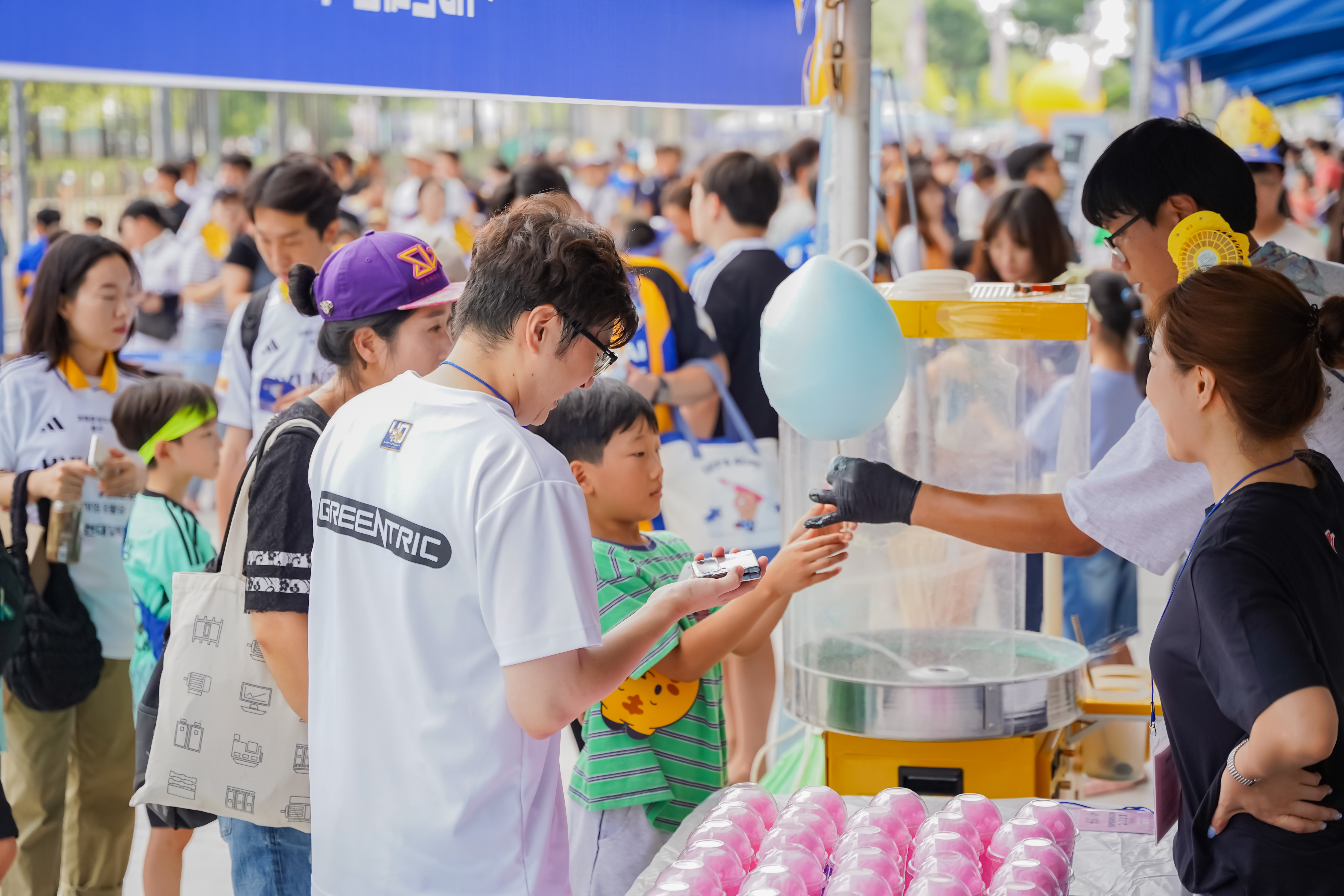 일반 관중 대상 이벤트도 진행했습니다. 경기 시작 전 우리 회사 인스타그램 계정을 팔로우한 이들에게 솜사탕을 무료로 증정하고, 추억을 손쉽게 남길 수 있도록 포토부스를 설치했습니다.