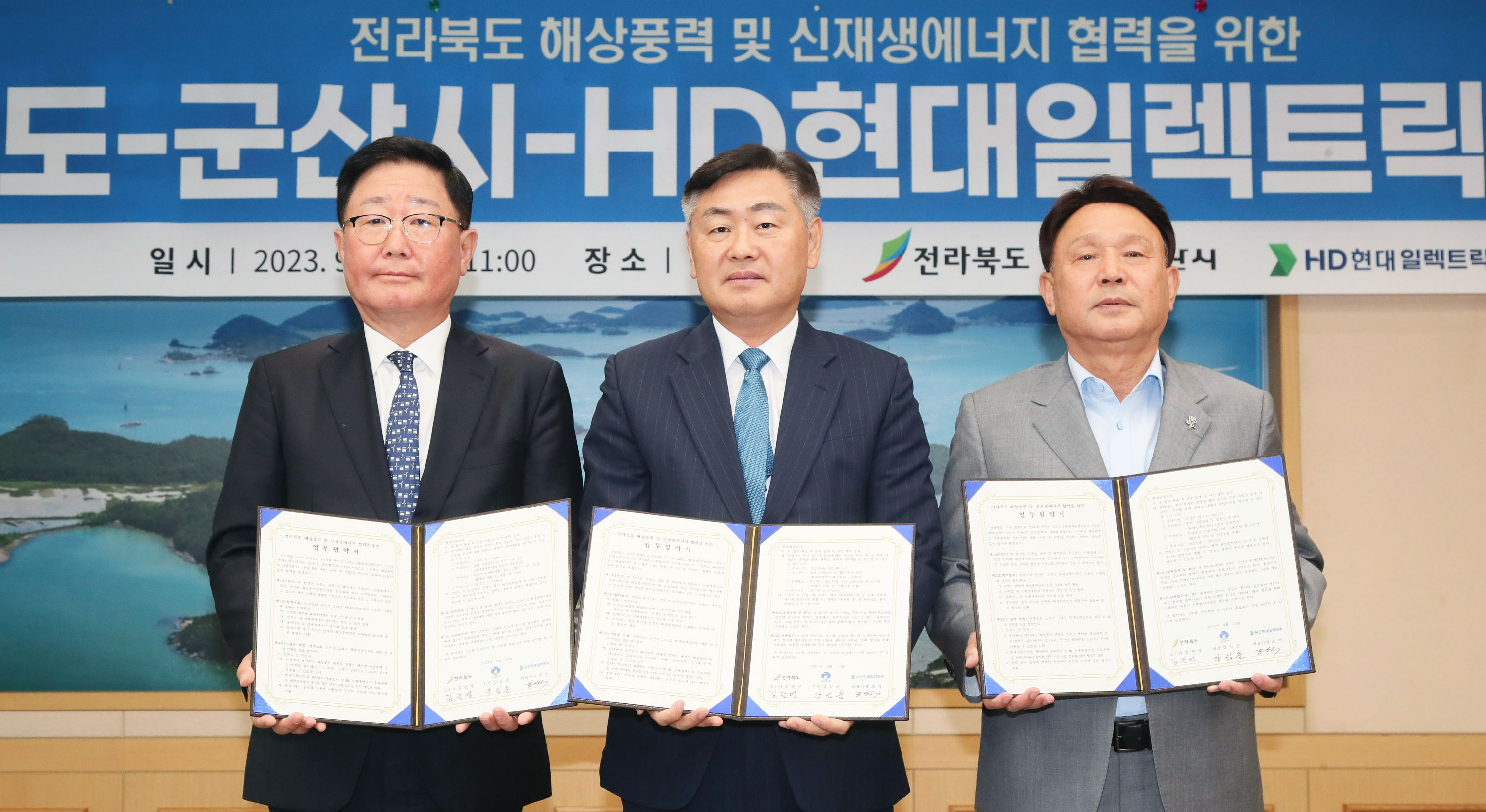 ▶ 전북도 내 해상풍력 및 신재생에너지 발전단지 조성 위해 3자 업무협약 체결